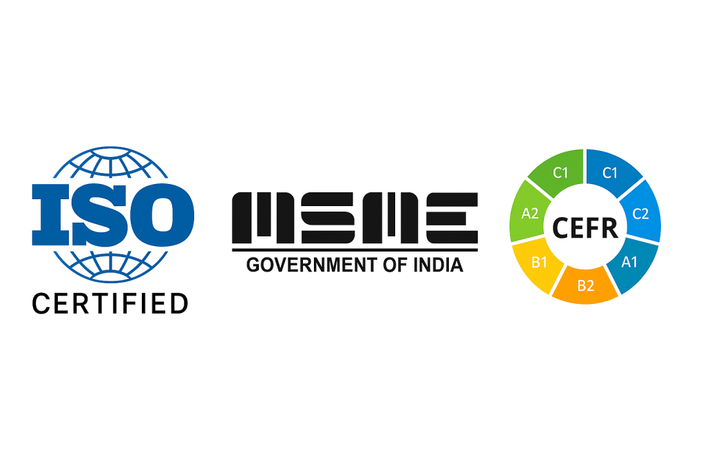 We are proudly accredited by ISO and MSME, which reflects our commitment to quality and consistency in education. Our English courses are standardised by CEFR (Common European Framework of Reference for Languages)— a globally recognized system for assessing language proficiency. This means your learning is aligned with international standards, giving you a measurable and reliable path to fluency.
